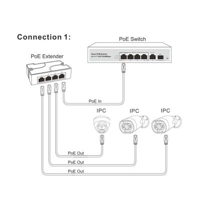 tscam.poe Удлинитель POE для IP-Камеры, POE Extender, POE-экстендер, AT13F-А, 3 выхода POE, 1 вход POE, 100 м, поддержка расстояния, IEEE802.3AF/AT